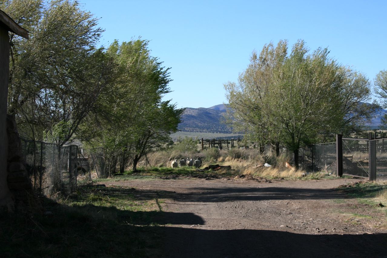 Lewie and I went to visit my friend Janet's shop today: Lofty's on 60. She has ten angora goats, three of which are this years offspring. They are darling! She spins beautiful mohair from her goats and brought some in to show me today that she dyed with peach leaves. She lets her goats roam the backyard freely and as she puts it, nobody seems to mind because they mow all the neighbors yards for free. When we went over to visit them the three young ones were in her backyard but her other seven goats were wondering down the road. After cooing over the babies - they were so shy but so cute! - we decided to walk down a ways to see the other adults.